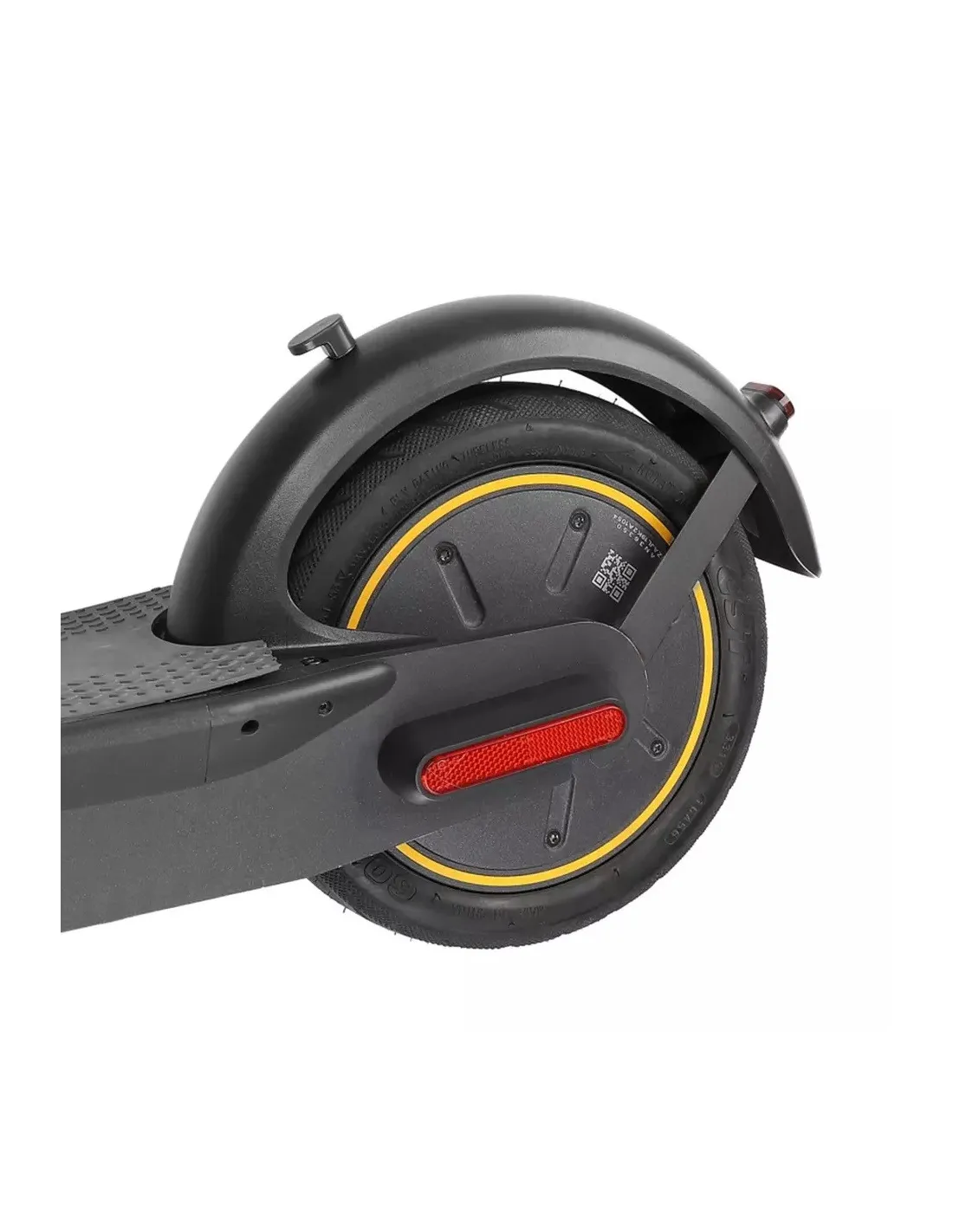 Zabezpiecza użytkownika przed wydostającą się wodą oraz brudem spod tylnych kół. Błotnik ma wbudowany hak do zaczepienia kolumny kierownicy w celu łatwiejszego przenoszenia i transportowania hulajnogi.