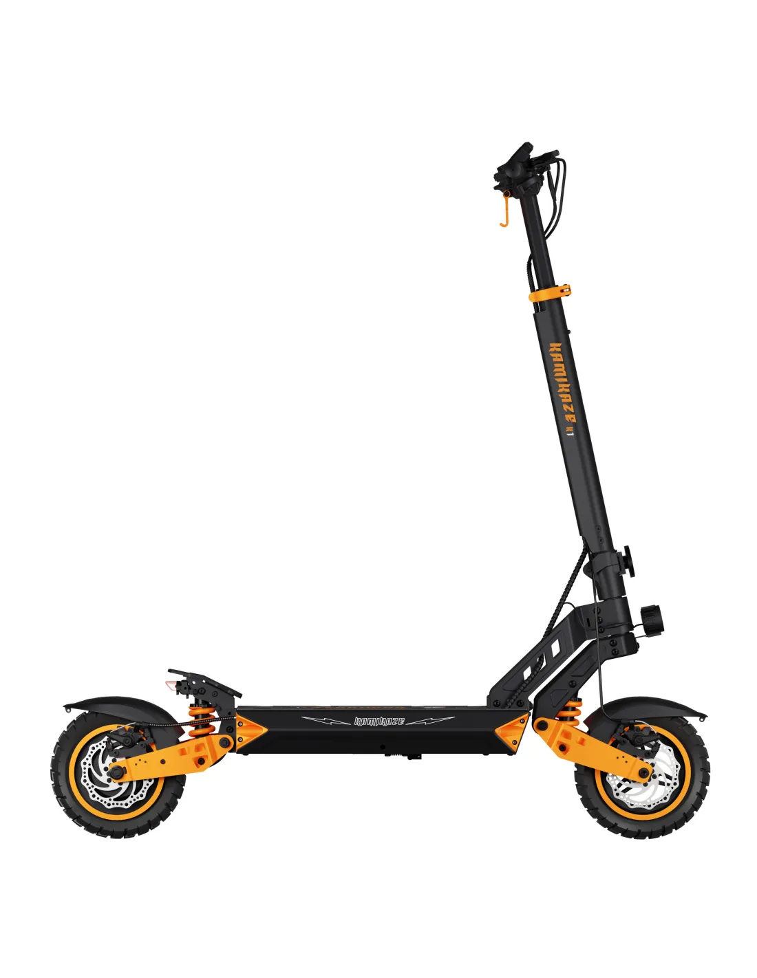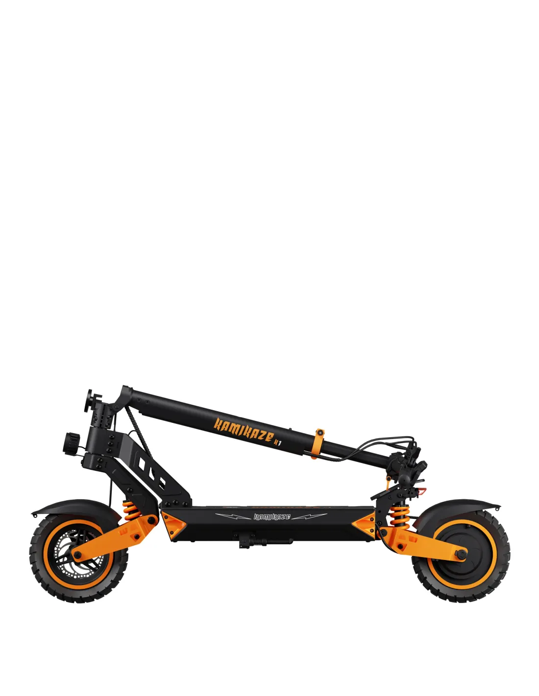 Kompaktowa, a zarazem solidna konstrukcja sprawia, że Kamikaze to hulajnoga stworzona do wygodnej podróży. Amortyzacja sprężynowa pochłania drgania, zapewniając płynność jazdy nawet po nierównych trasach. Ergonomiczna kierownica i czytelny wyświetlacz LCD czynią każdy przejazd przyjemnym i intuicyjnym. Niewielkie wymiary po złożeniu pozwalają zabrać ją wszędzie – do biura, do mieszkania czy w podróż pociągiem. To nowoczesny środek transportu, który łączy styl, wygodę i technologiczną doskonałość, sprawiając, że codzienne dojazdy zmieniają się w pełną komfortu przyjemność.