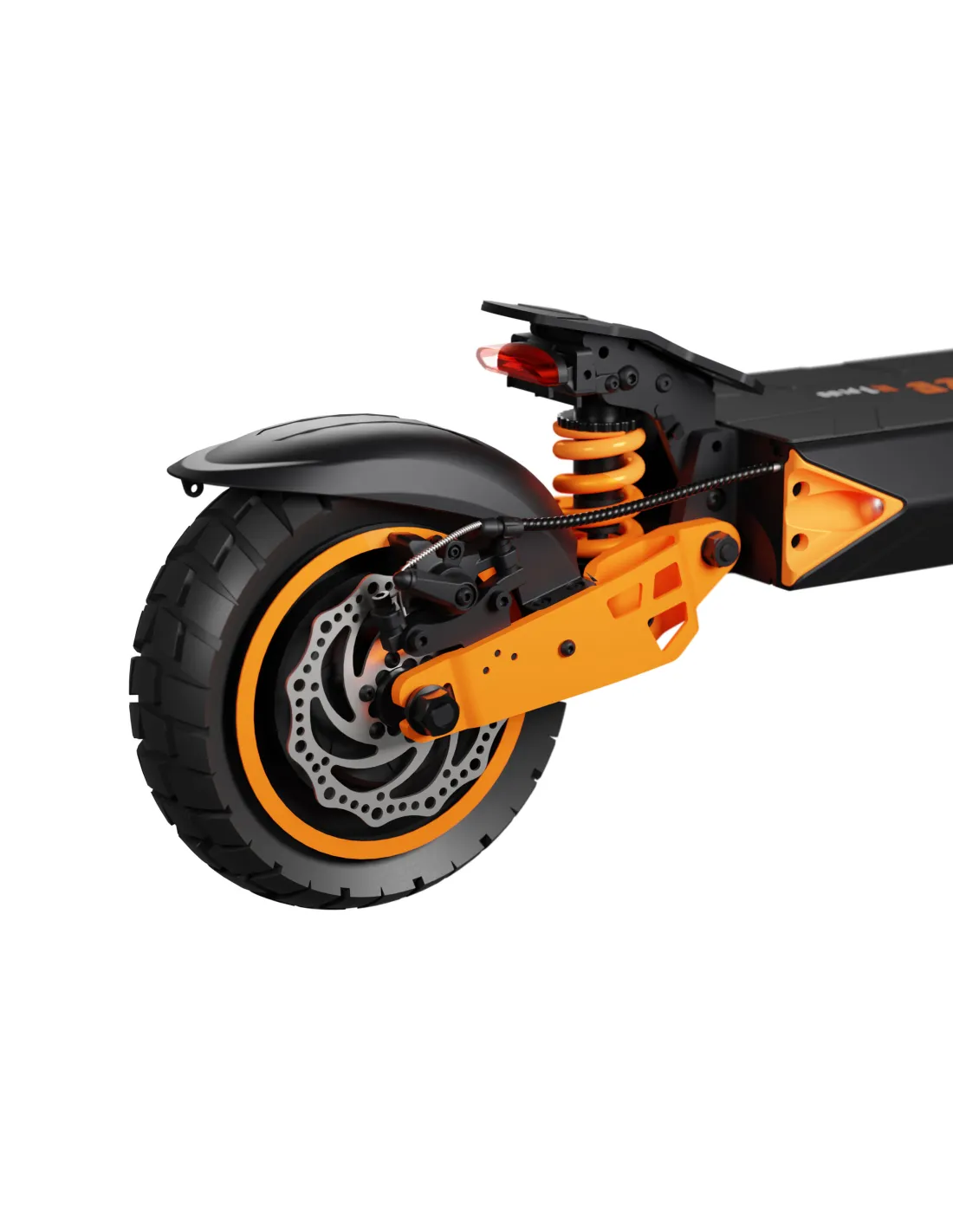 Prędkość to wolność, ale wolność wymaga kontroli. Dlatego K1 Plus uzbrojono w 2 hamulce tarczowe, które zatrzymują maszynę w mgnieniu oka – nawet wtedy, gdy serce wali jak bęben. Szeroka kierownica daje Ci stabilność w ostrych zakrętach, a oświetlenie LED (przednia lampa, podświetlany podest i kierunkowskazy) sprawia, że jesteś widoczny jak płonący znak samuraja na polu bitwy. Dzięki wodoodporności IPX5 żadna ulewa ani błoto nie odbiorą Ci frajdy z jazdy. To jazda bez kompromisów – szybko, mocno, ale zawsze pod pełną kontrolą.