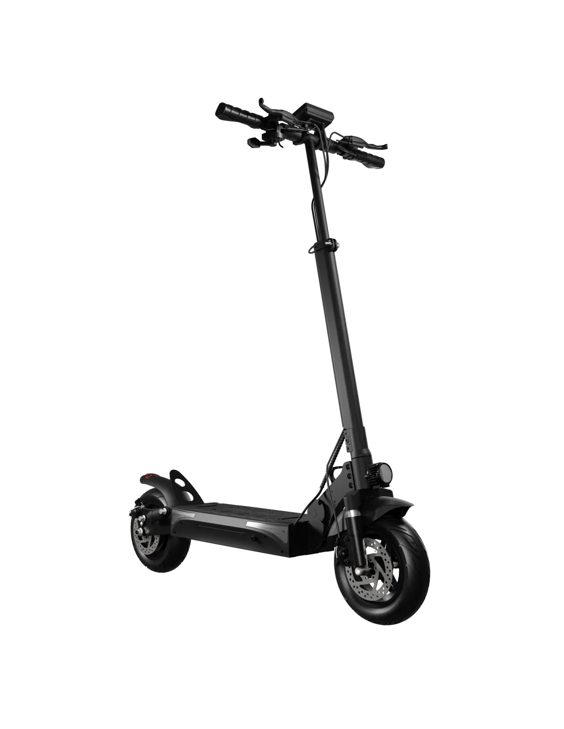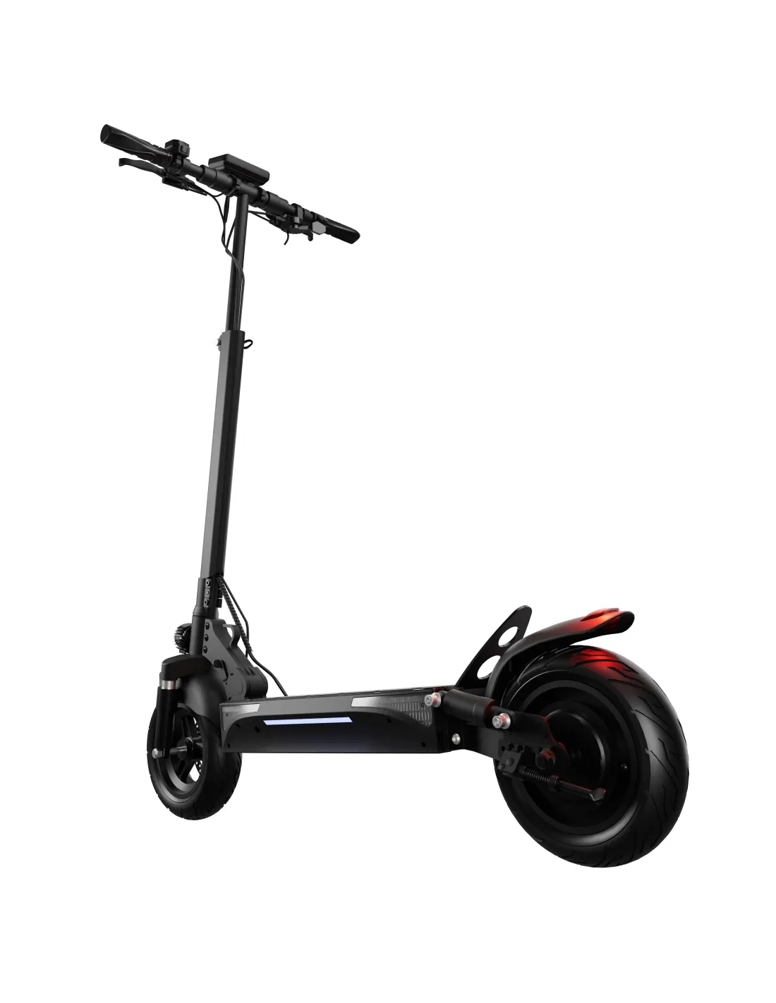 Hulajnoga elektryczna Ruptor R1 Lite rozwija swoje skrzydła głównie w mieście. Dzięki mocy 500W generowanej przez silnik z tyłu możemy dynamicznie pokonywać nawet trudne i wysokie wzniesienia, ale także sprawnie poruszać się po płaskim terenie w różnych warunkach. Akumulator o pojemności 48V 15Ah umożliwia przejechanie na jednym ładowaniu do 60 km. Duże, 10-calowe koła oraz świetna amortyzacja sprawiają, że każdy kilometr pokonywany jest w niezwykle komfortowych warunkach. Mocne hamulce tarczowe z przodu i z tyłu pozwalają na sprawne zatrzymanie hulajnogi przed przeszkodą, oferując do tego świetną precyzję działania.