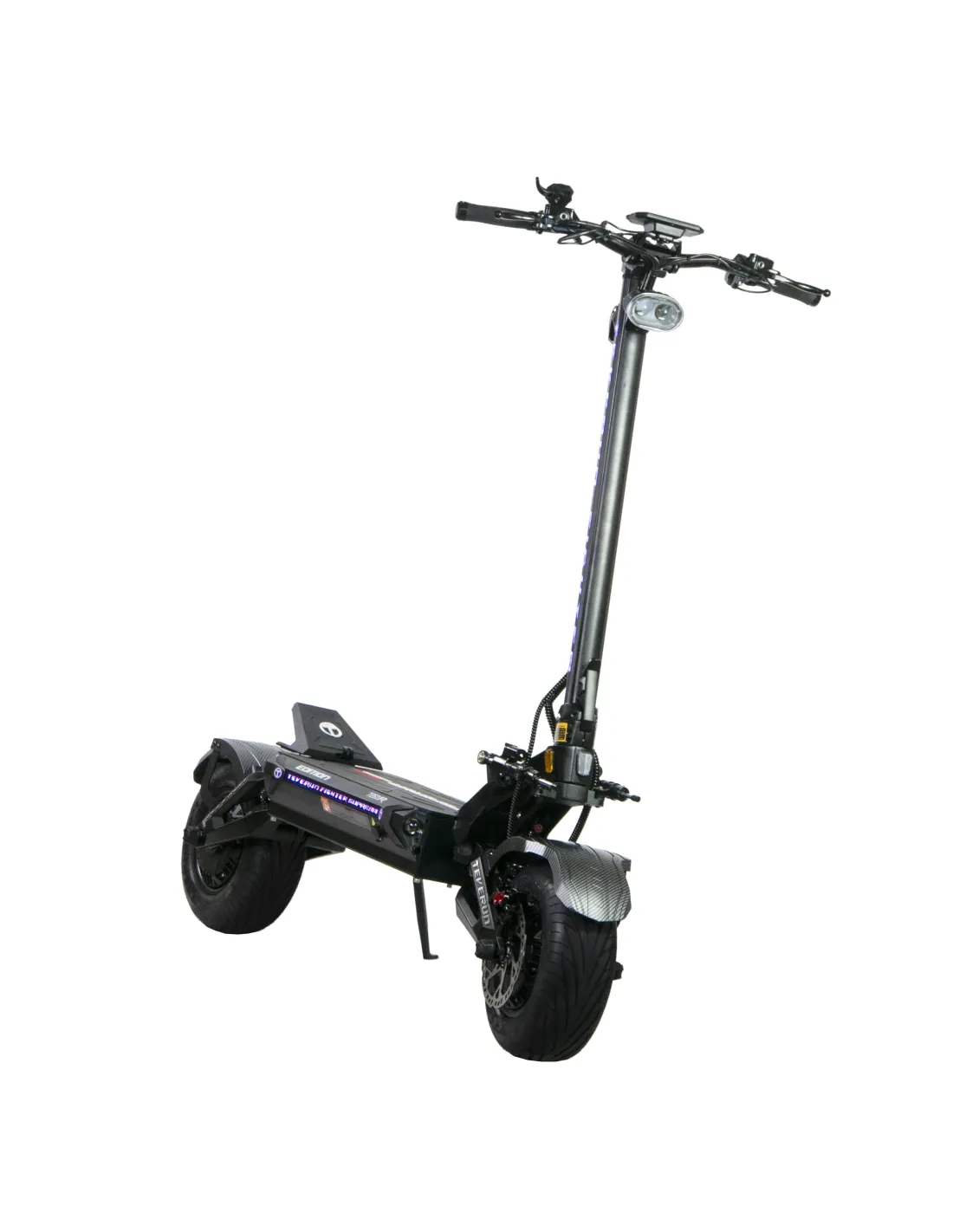 Ta maszyna powstała, aby zadowolić najbardziej wymagających użytkowników, którzy nie boją się wyzwań. Dzięki dwóm potężnym silnikom o łącznej mocy szczytowej 11700W, pojazd ten osiąga maksymalną prędkość aż 120 km/h, oferując agresywną i ekscytującą jazdę, przy jednoczesnym zachowaniu stabilności. Zastosowanie sterowników o przepustowości 2x70A umożliwia uzyskiwanie ekstremalnego przyspieszenia podczas dodawania gazu. Ponieważ ta maszyna to prawdziwa bestia, ze względów bezpieczeństwa, zaleca się korzystanie z jej pełnych możliwości w kasku i w odpowiednim stroju.
