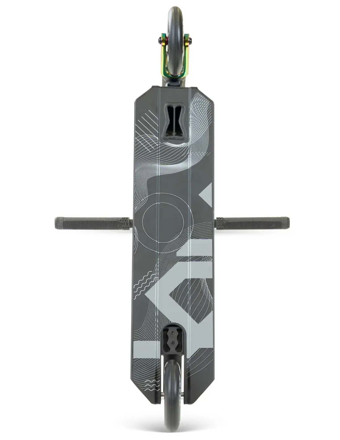 MG5 Axion to hulajnoga, która łączy w sobie precyzję wykonania i dbałość o każdy detal. Jej podest MGP Ultra-Light Flute-Tech Pro, wykonany z wytrzymałego aluminium 6061-T6, zapewnia lekkość i odporność, a jego wymiary – 508 mm długości i 127 mm szerokości – gwarantują komfort podczas trików. Kierownica MG Taper Pro z chromo-molibdenu o wysokości 609 mm i szerokości 558 mm idealnie leży w dłoniach, umożliwiając pełną kontrolę. Widelec MGP Carbine ze stopu aluminium 6062-T6 oraz system kompresji IHC odpowiadają za niezawodność w trakcie intensywnej jazdy. Odpowiednie trzymanie i stabilność gwarantuje zacisk MG Viral X2. Niezwykle trwałe kółka MGP Force 110 mm z aluminiowym rdzeniem i twardością 88A, wspierane przez łożyska ABEC-11 High-Speed Chrome, oferują szybkość i zwrotność. Całość uzupełniają wygodne gripy MGP Trifecta 180 mm oraz elastyczny hamulec MFX Flex-Lite Composite. To połączenie technologii i stylu sprawia, że każda jazda staje się płynna, dynamiczna i pełna adrenaliny.