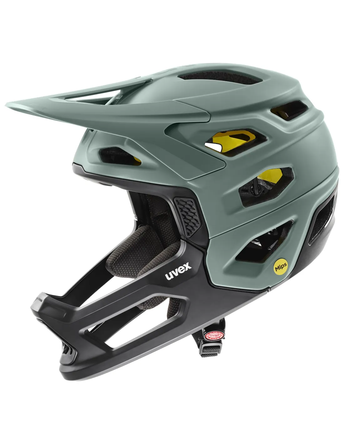 Kask rowerowy Uvex Revolt MIPS dostępny w dwóch wariantach rozmiarowych. Jeden z niewielu modeli kasków Full-Face ze ściąganą gardą. Dzięki temu możemy używać go zarówno podczas downhillu, jak i w wyścigach MTB oraz na co dzień! Niska waga zapewnia wysoki komfort użytkowania w każdych warunkach. 16 wbudowanych otworów wentylacyjnych to rewelacyjny komfort termiczny podczas upalnych dni. Elastyczny daszek FlexShield zabezpiecza przed nieprzyjemnym światłem słonecznym. Wygodne zamknięcie MONOMATIC oraz system anatomic IAS zapewnia idealne dopasowanie.