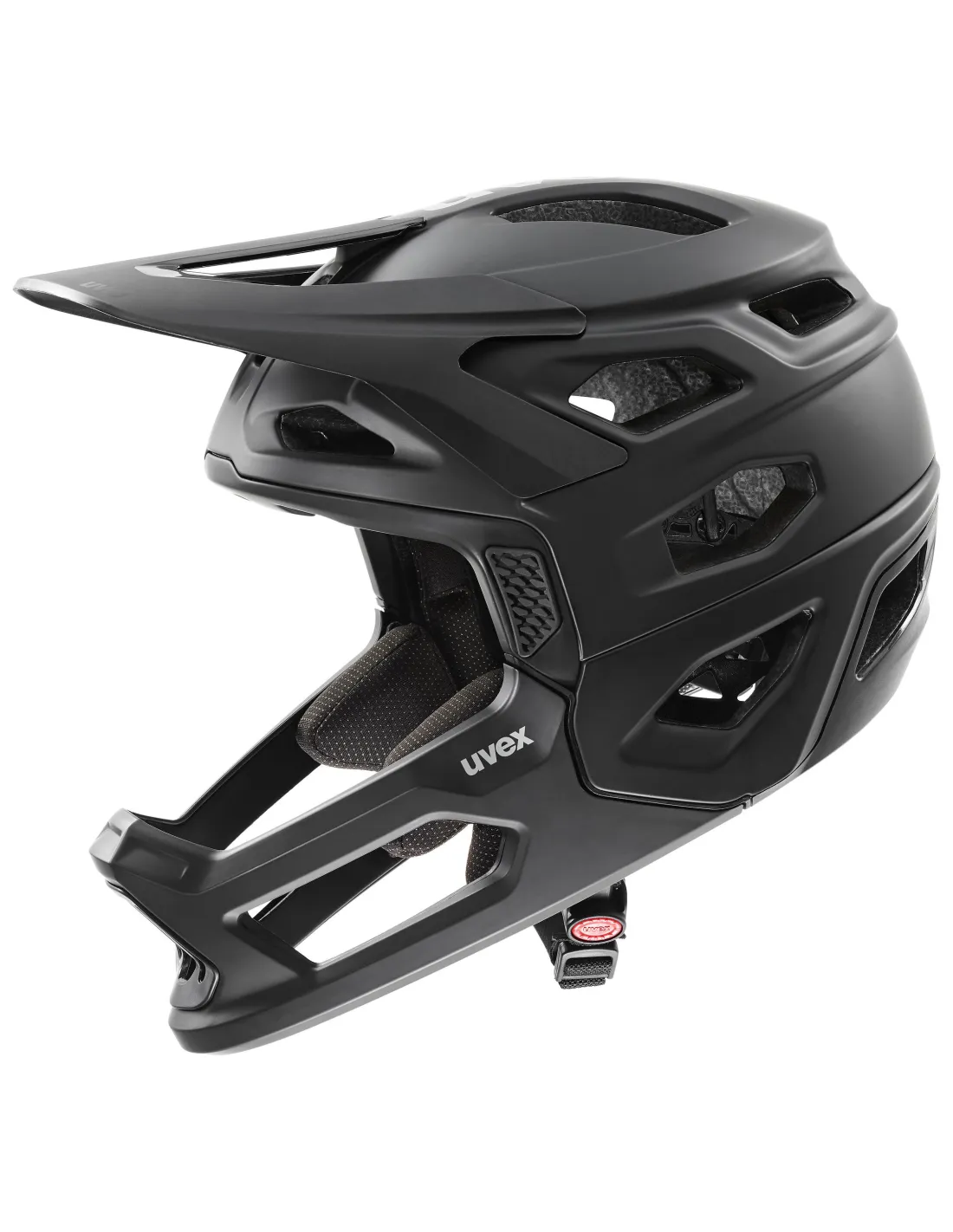 Kask rowerowy Uvex Revolt MIPS dostępny w dwóch wariantach rozmiarowych. Jeden z niewielu modeli kasków Full-Face ze ściąganą gardą. Dzięki temu możemy używać go zarówno podczas downhillu, jak i w wyścigach MTB oraz na co dzień! Niska waga zapewnia wysoki komfort użytkowania w każdych warunkach. 16 wbudowanych otworów wentylacyjnych to rewelacyjny komfort termiczny podczas upalnych dni. Elastyczny daszek FlexShield zabezpiecza przed nieprzyjemnym światłem słonecznym. Wygodne zamknięcie MONOMATIC oraz system anatomic IAS zapewnia idealne dopasowanie.