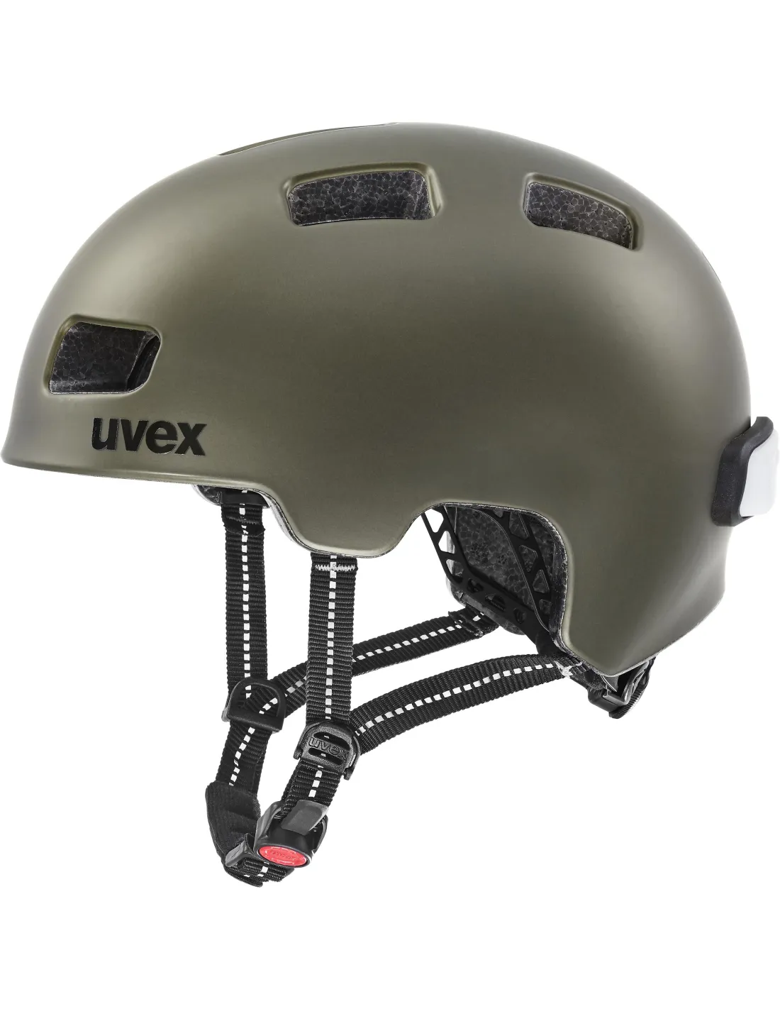 Uvex City 4 Green Smoke Mat to doskonały kask do jazdy w miejskiej dżungli. Ze względu na jego wygląd, jazda w nim staje się niezwykle stylowa, ale również bezpieczna. System 3D IAS Fit odpowiedzialny jest za dostrojenie kasku do obwodu głowy i wysokości. Zapięcie Monomatic pozwala na zdjęcie go z głowy za pomocą jednego przycisku. System pasków FAS odpowiada za prawidłowe ułożenie pasków względem policzków. Za bezpieczeństwo po zmroku odpowiada lampka LED w kolorze czerwonym zamontowana z tyłu, aby jadąc nawet w nocy, nasza postać była widoczna. Elementy odblaskowe potęgują ten efekt. Szybkoschnąca wyściółka Basic wspomaga zachowanie higieny pod skorupą, a 10 otworów wentylacyjnych chłodzi pod nią przestrzeń. City 4 jest rewelacyjną propozycją na stylowy i komfortowy miejski kask!