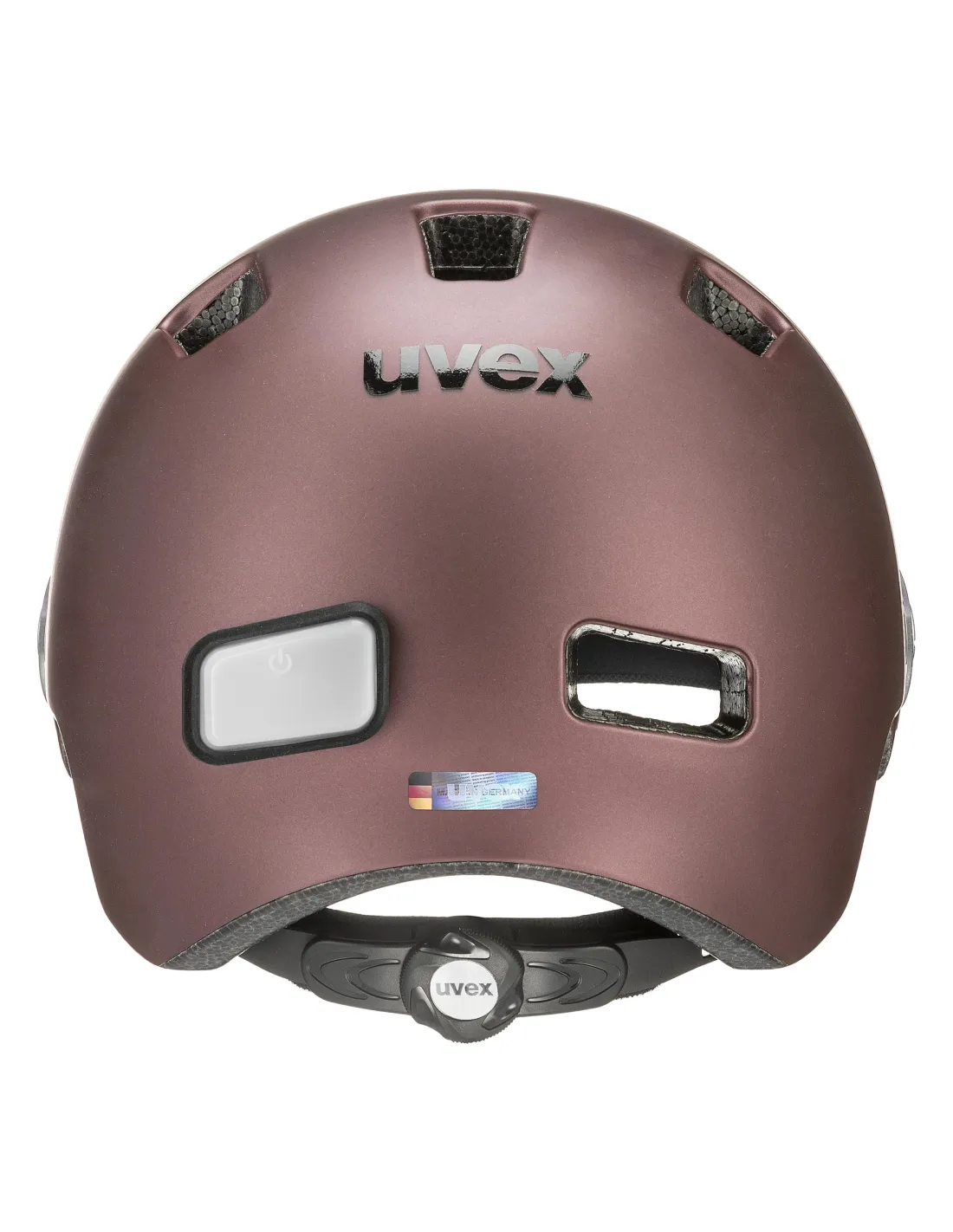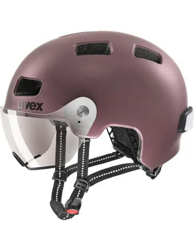 Kask Uvex Rush Visor Blackberry Mat wyróżnia się na tle innych kasków tym, że posiada zintegrowany wizjer, czyli szybkę na przodzie niczym w kaskach motocyklowych. Rozwiązanie takie jest niezwykle funkcjonalne, gdyż nie musimy pamiętać o zakładaniu okularów, gdyż wystarczy jeden ruch dłonią, by wizjer chronił nasze oczy. Kask ze względu na swoją budowę rekomendowany jest do korzystania w mieście przez osoby dorosłe. Został on wyposażony w szereg technologii usprawniających dopasowanie kasku do danego użytkownika. System pasków FAS pozwala na dostrojenie bocznych pasków do krzywizn głowy, aby nie obcierały one policzków. System 3D IAS Fit pozwala na szybkie i sprawne dopasowanie wewnętrznej średnicy prowadnic do obwodu i wysokości głowy. 10 kanałów wentylacyjnych skutecznie chłodzi wnętrze nawet przy niskich prędkościach i wysokich temperaturach panujących na zewnątrz. Głęboki tył kasku został zaprojektowany w taki sposób, by podczas uderzenia chronić maksymalnie tył głowy oraz po części kark oraz potylicę. Za bezpieczeństwo po zmroku i w trudnych warunkach pogodowych odpowiedzialna jest lampka LED umiejscowiona z tyłu. Świeci ona na kolor czerwony, co w połączeniu z odblaskami sprawia, że już z odległości kilkuset metrów, po zmroku stajemy się widoczni dla innych użytkowników. Wracając do wizjera. Jest on również odpowiedzialny za ochronę oczu przed zanieczyszczeniami mogącymi wypaść spod kół samochodów jadących przed nami, jak również owadami i innymi przedmiotami, które mogłyby wyrządzić szkody naszemu narzędziu wzroku. W przypadku Rush Visor zarówno wygląd, jak i technologia jest po prostu kosmiczna. Użytkowanie go w warunkach miejskich stanie się nie tylko przywilejem, ale również czystą frajdą. Niezwykle kompletny, lekki oraz bezpieczny kask wykorzystujący najlepsze rozwiązania, by zwiększyć również komfort jazdy.