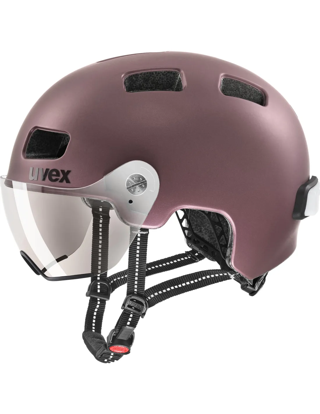 Kask rowerowy Uvex Rush Visor przeznaczony jest dla użytkowników chcących posiadać niezwykle bezpieczne i wygodne zabezpieczenie głowy i oczu w trakcie jazdy na rowerze. Szybka na przodzie ochroni nasze oczy przed wiatrem, promieniami słonecznymi oraz zanieczyszczeniami mogącymi wypaść spod kół jadących samochodów. Rush Visor wyposażony jest w system pasków FAS, regulację obwodu i głębokości 3D IAS Fit, zapięcie Monomatic oraz wyściółkę typu Basic, lampkę LED, odblaski i soczewkę LiteMirror Silver cat. 1. Za dostarczenie odpowiedniej ilości powietrza pod skorupę kasku odpowiedzialnych jest aż 10 kanałów. Jest to niezwykle ważne, by kask był przewiewny, jeżeli poruszamy się z niskimi prędkościami po miejskiej dżungli. Ale do tego właśnie został on stworzony! Do miasta nie ma lepszego!