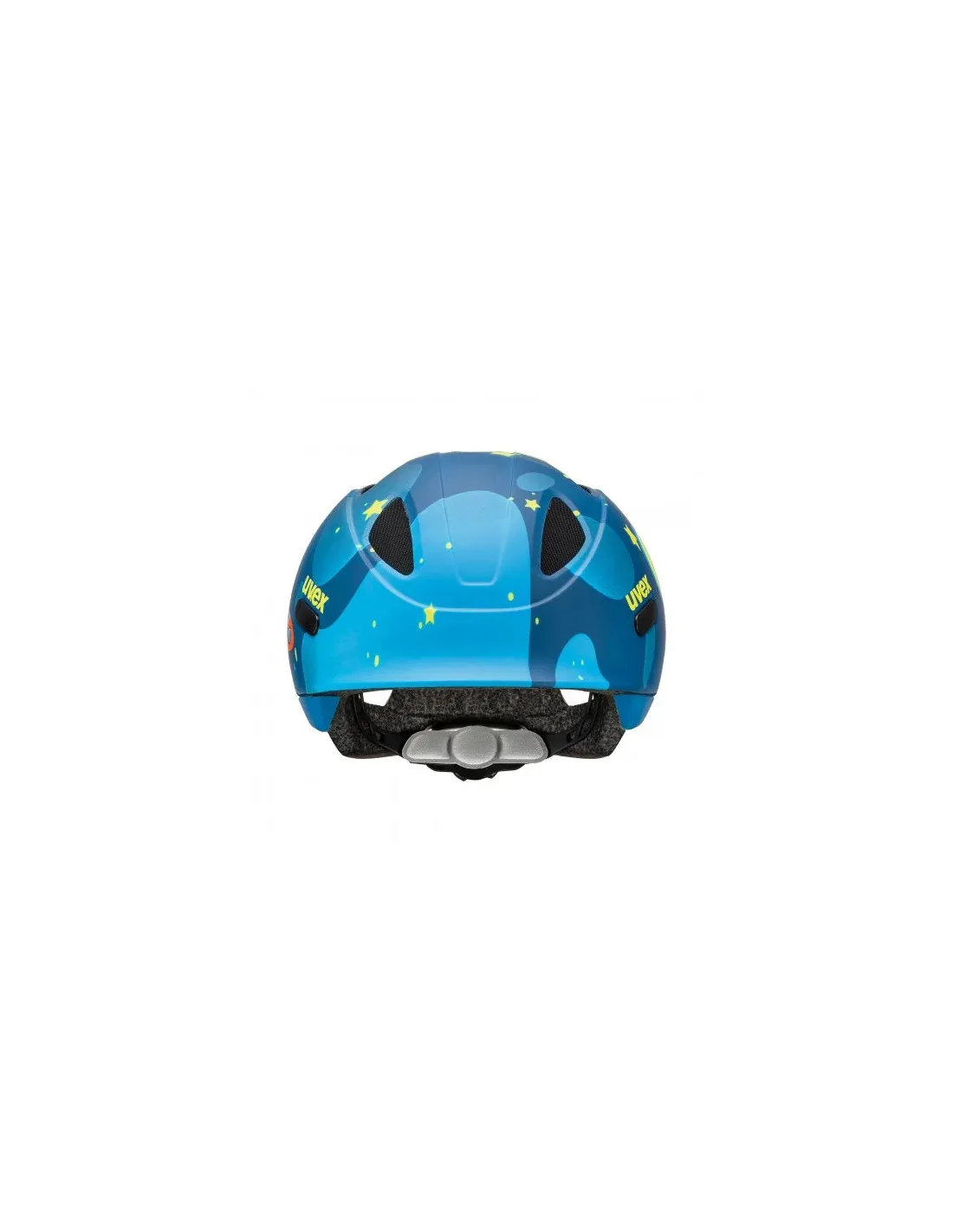 Kask rowerowy dziecięcy Uvex Oyo Style Deep Space został stworzony z myślą o najmłodszych użytkownikach, czyli nawet niemowlętach. Chcąc zapewnić dziecku prawidłowy rozwój i przyspieszyć poznawanie świata, naturalne jest, że wszelkie przejażdżki rowerowe rodziców muszą odbyć się wraz z dzieckiem czy to w przyczepce, czy też w foteliku. Seria Oyo Style cechuje się niezwykle modnymi wzorami na skorupie kasku oraz ciekawej kolorystyce i szacie graficznej. Dzięki szeregowi różnych technologicznych rozwiązań, podróż w tym kasku będzie niezwykle bezpieczna i zarazem wygodna. System regulacji IAS odpowiada za idealne dopasowanie wewnętrzne kasku do rozmiaru głowy, a dokładnie jej obwodu. Jest to szczególnie ważne, by dobrze docisnąć kask do głowy, gdyż w innym wypadku może dojść do przemieszczenia się go na głowie podczas nieoczekiwanego zdarzenia i może nie spełnić w 100% swojej roli. Dlatego dzięki systemowi IAS można precyzyjnie dopasować kask do naszego malucha. System FAS odpowiada zaś za paski po bokach wokół uszu. Dzięki niemu możemy odpowiednio skrócić lub zwiększyć dystans pasków od skóry dziecka, aby nie obcierały one policzków. Dzięki zamknięciu Monomatic kask można zdjąć lub zabezpieczyć jednym naciśnięciem w trakcie dosłownie jednej sekundy. Przy dzieciach jest to szczególnie ważne, gdyż jak wszyscy wiemy, potrafią się one szybko niecierpliwić w trakcie zakładania kasków na głowę, co może skutecznie sparaliżować dobrą atmosferę na początku podróży. Dzięki niskiej wadze na poziomie 250 g kask jest praktycznie niewyczuwalny przez dziecko na głowie, a co za tym idzie nie zrazi się on do takiej formy zabezpieczenia głowy podczas przejażdżki. Za komfort termiczny odpowiada 10 otworów wentylacyjnych skutecznie chłodzących głowę w trakcie największych upałów. Osłonka xTRA Shield zintegrowana z materiałem EPS zabezpiecza czoło dziecka przed uderzeniem z frontu, zwiększając całokształt ochrony przez kask. Uvex Oyo Style świetnie sprawdza się w codziennym użytkowaniu przez najmłodsze dzieci, nie ważne czy użytkowany jest podczas samodzielnej jazdy na rowerze, jazdy na rowerku biegowym, trzykołowcu czy hulajnodze lub na foteliku z rodzicami. Przemyślane rozwiązania technologiczne oraz niska masa i dużo otworów wentylacyjnych pozwolą na komfortowe i bezpieczne korzystanie z tego kasku!