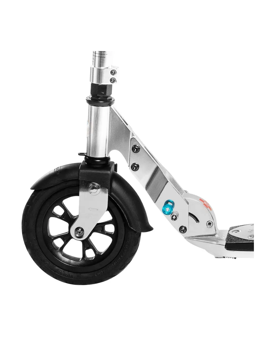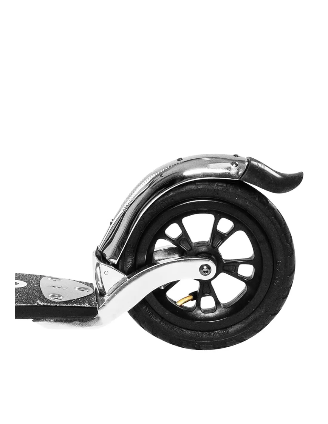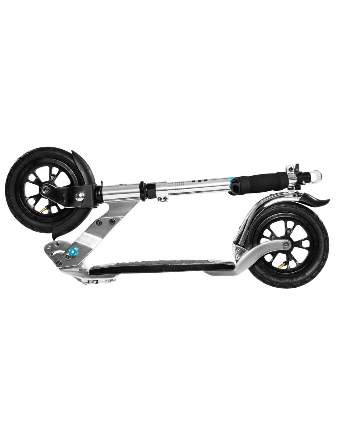 Dwukołowa hulajnoga z pompowanymi kołami wykonana z aluminium cieszy się niesłabnącą popularnością wśród młodzieży oraz starszych użytkowników. Duże pompowane koła oraz dobra amortyzacja podestu z zabezpieczeniem antypoślizgowym zapewnią wygodną jazdę po każdej nawierzchni. Jest idealna na spacer z psem, na wycieczkę do parku czy wypad do miasta. Jazda na nieutwardzonej nawierzchni potrafi być naprawdę stabilna i bezpieczna. Podest został wykonany z drewna i włókna szklanego który doskonale tłumi wstrząsy podczas jazdy na nierównym terenie. Wygodny i szeroki podest pozwala na swobodne położenie obydwu stup. 200 milimetrowe pompowane koła świetnie poradzą sobie podczas jazdy na kostce czy też na wszelkich nierównościach.