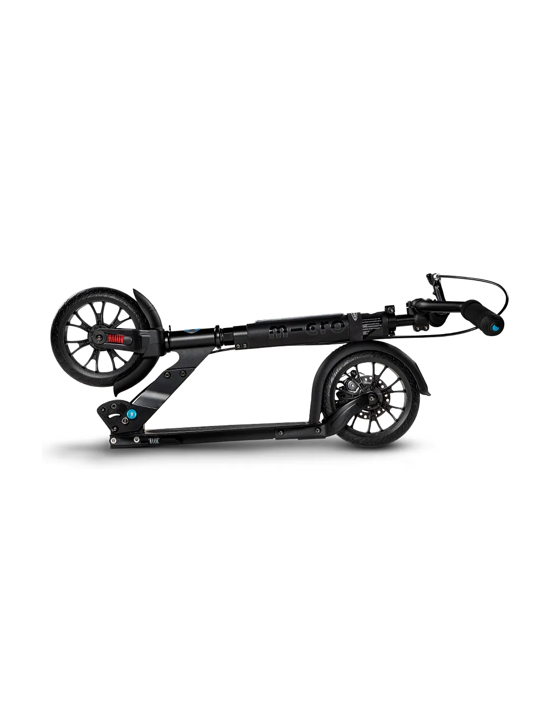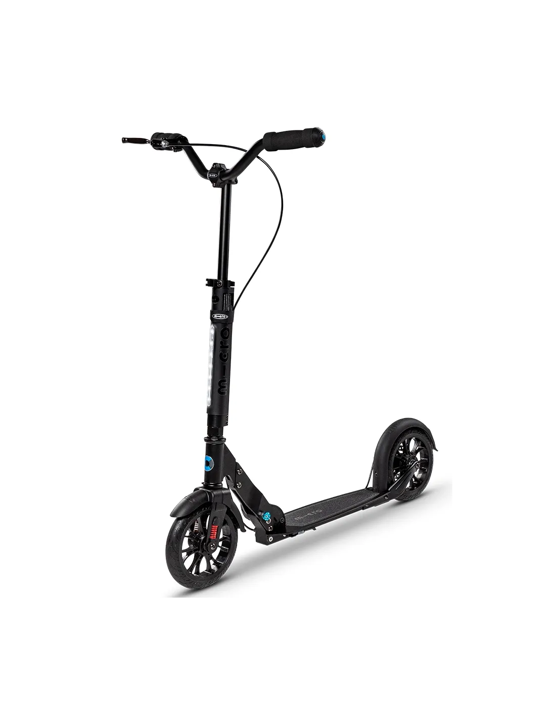 Micro Metropolitan Deluxe został zaopatrzony w tylny hamulec tarczowy z klamką na kierownicy. Podnosi to nasze bezpieczeństwo, pozwala odpowiednio szybko wyhamować przed przeszkodą i uniknąć w ten sposób przykrych konsekwencji. Najwyższej jakości aluminium, zastosowane wyłącznie sprawdzone rozwiązania, duże koła, amortyzacja oraz oświetlenie przednie w technologii LED. To tylko niektóre z cech hulajnogi Micro Metropolitan Deluxe. Niska waga na poziomie 5,8 kg oraz intuicyjny system składania pozwala łatwo przewozić hulajnogę w bagażniku. Przednie oświetlenie LED w nocy jest niezwykle kluczowe, by zapewnić jak najwyższe bezpieczeństwo użytkownika. Lampka zasilana jest przez dwie baterie AAA tzw. paluszki. Posiada ona dwa warianty świecenia: ciągłe oraz migające – zależnie od potrzeb i preferencji.