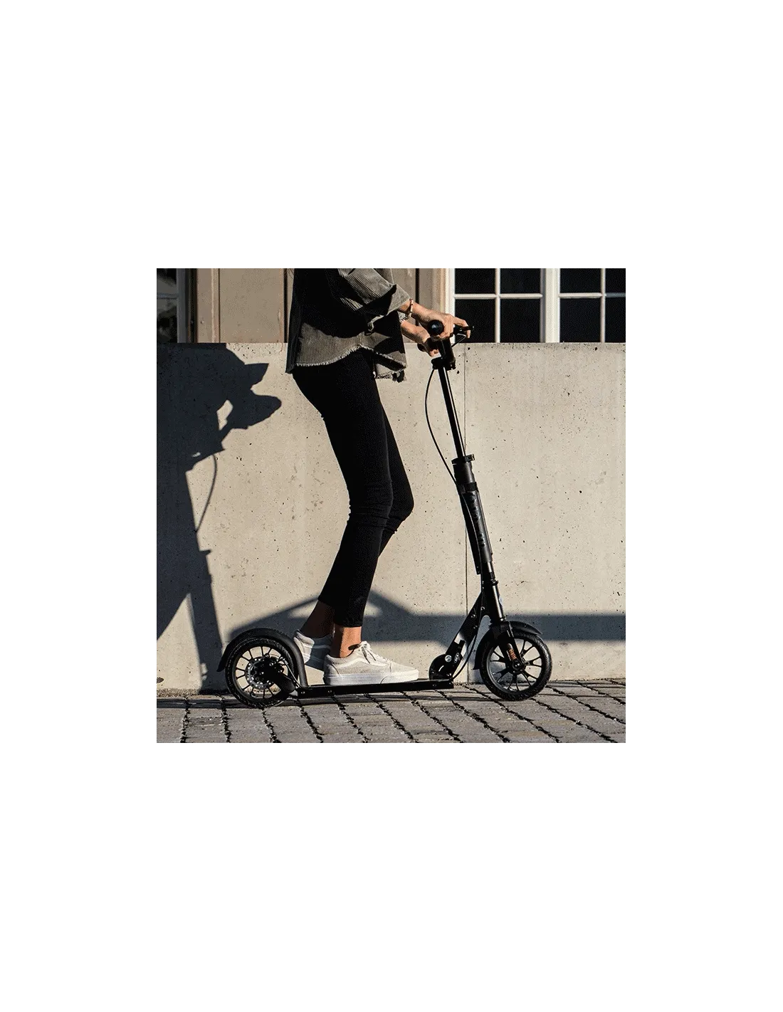 W Metropolitan Deluxe zastosowano stopkę, która pozwala hulajnodze stać w pionie bez konieczności opierania jej o ścianę lub inny element architektoniczny. Duże koła 200 mm z bieżnikiem odprowadzającym wodę i zapobiegającym aquaplaningowi w połączeniu z przednią amortyzacją to przepis na niezwykle komfortową jazdę nawet na dalekich dystansach. Szeroki podest bez problemu pomieści jedną stopę dorosłego lub dwie dziecka, dzięki czemu hulajnoga może być środkiem transportu zarówno dla najmłodszych, jak i dorosłych użytkowników. Klasyczny wygląd jest jednocześnie ponadczasowy. Przykuwa wzrok, cieszy oko. Niezwykle przyjazna i łatwa w użytku hulajnoga przeznaczona do jazdy między miastami, ale też na krótkich dystansach do sklepu, pracy lub szkoły.