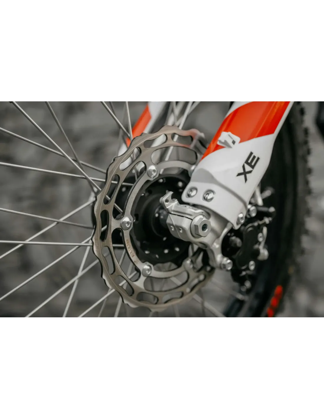 Aby zapanować nad taką mocą, potrzebujesz hamulców, które potrafią zatrzymać pędzącą bestię w ułamku sekundy – i właśnie takie rozwiązania zastosowano w Zero XE. Na przednim kole znajduje się tarcza o średnicy 240 mm z dwutłoczkowym zaciskiem hydraulicznym, natomiast tył wyposażono w nieco mniejszą, ale równie skuteczną tarczę 220 mm. Oba układy wykorzystują hamulce DOT – prosto z motocykli sportowych i motocrossowych. Dzięki takiemu zestawowi każdy manewr, czy to gwałtowne hamowanie przed stromym zjazdem, czy precyzyjne dozowanie siły w ciasnym zakręcie, odbywa się z pełną kontrolą i poczuciem bezpieczeństwa. Lewy tylny hamulec umieszczony w miejscu łatwo dostępnym dla dłoni zwiększa kontrolę, szczególnie w sytuacjach off-roadowych, gdzie liczy się każdy ułamek sekundy reakcji.