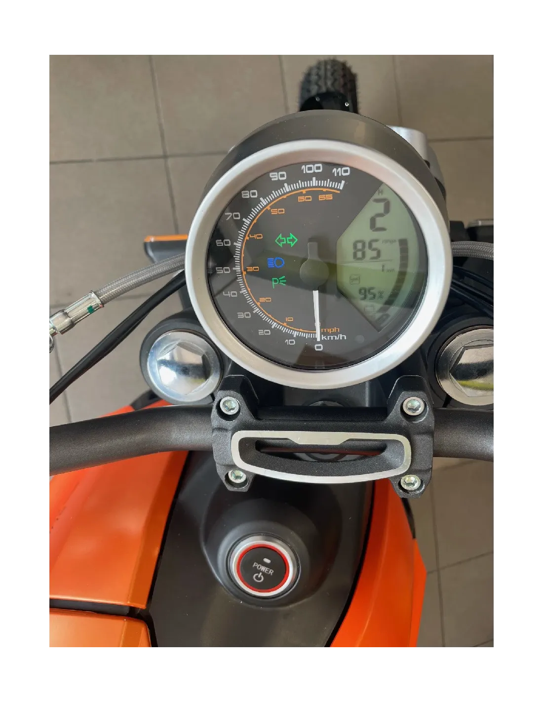 Zastosowanie akumulatora o pojemności 72V 45Ah umożliwia przejechanie nawet do 110 km na jednym ładowaniu. Oczywiście zasięg uzależniony jest od wagi użytkownika, stopnia nachylenia drogi, prędkości oraz nawet temperatury i tego z której strony wieje wiatr. W mieście średni zasięg będzie zdecydowanie większy, niż na trasie. Czyli odwrotnie, niż w motocyklach spalinowych. Czemu? W mieście nie rozwijamy tak dużych prędkości, częściej poruszamy się z prędkościami rzędu 30-50 km/h. Jak wiadomo, każde miasto jest inne, jednakże my chcemy to uśrednić. Elektrykiem osiągamy większe zasięgi w mieście również dlatego, że mniejsze znaczenie dla nas ma pęd powietrza i to czy wieje nam w plecy czy jedziemy pod wiatr.