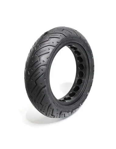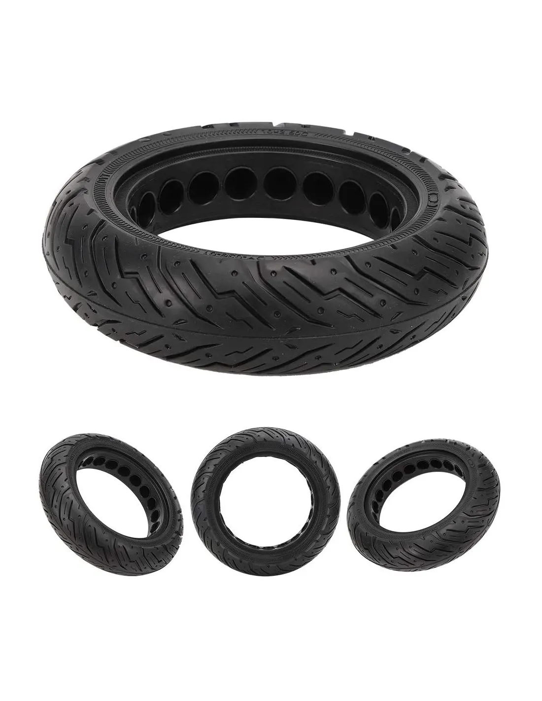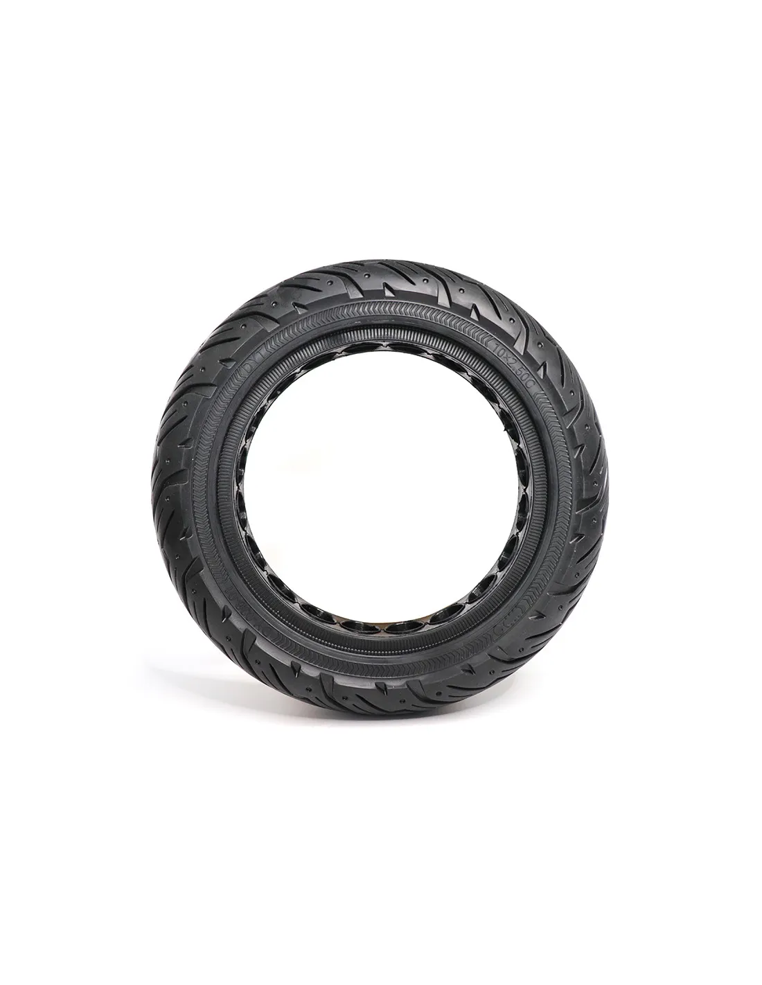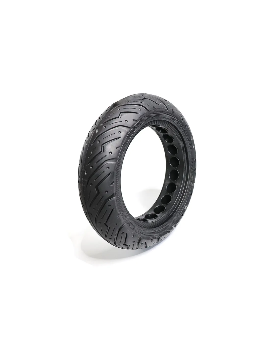 Opona pełna bezdętkowa 10" do hulajnogi elektrycznej Ninebot G30 Max oraz Motus Scooty 10. Opona pełna wykonana jest z bardzo trwałej, odpornej na ścieranie gumy. Jeśli chcesz raz na zawsze zażegnać problem łapania gum i cieszyć się bezproblemową jazdą to dobrze trafiłeś. Opona posiada system wewnętrznych komór, co zapewnia większy komfort jazdy niż tradycyjne pełne opony. Wyraźny bieżnik poprawia trakcję i zapewnia pewność w zakrętach. Dzięki kształtowi opony hulajnoga prowadzi się bez najmniejszych problemów.