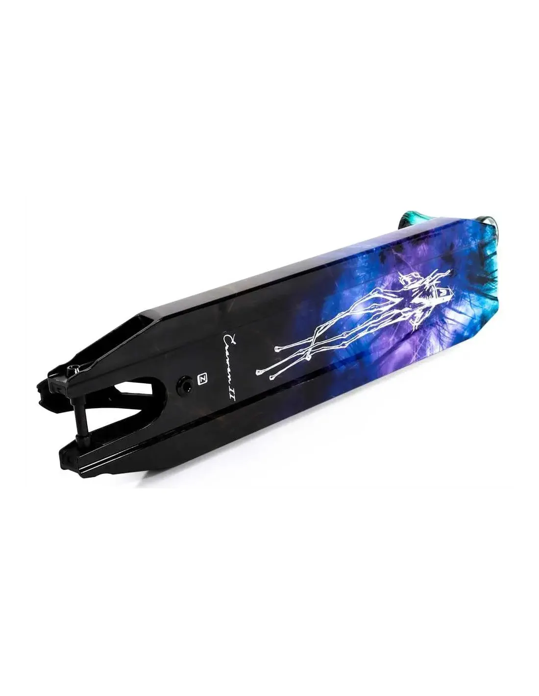 do hulajnogi wyczynowej o świetnym stosunku jakości do ceny. Jeśli uwielibiasz jazdę parkową i robienie trików takich jak whipy i flare’y, wycięty deck typu peg-cut będzie dla Ciebie idealny. Ten podest od Ethic jest kompatybilny z kółkami o średnicy 100mm, 110mm, 115mm i 120mm.