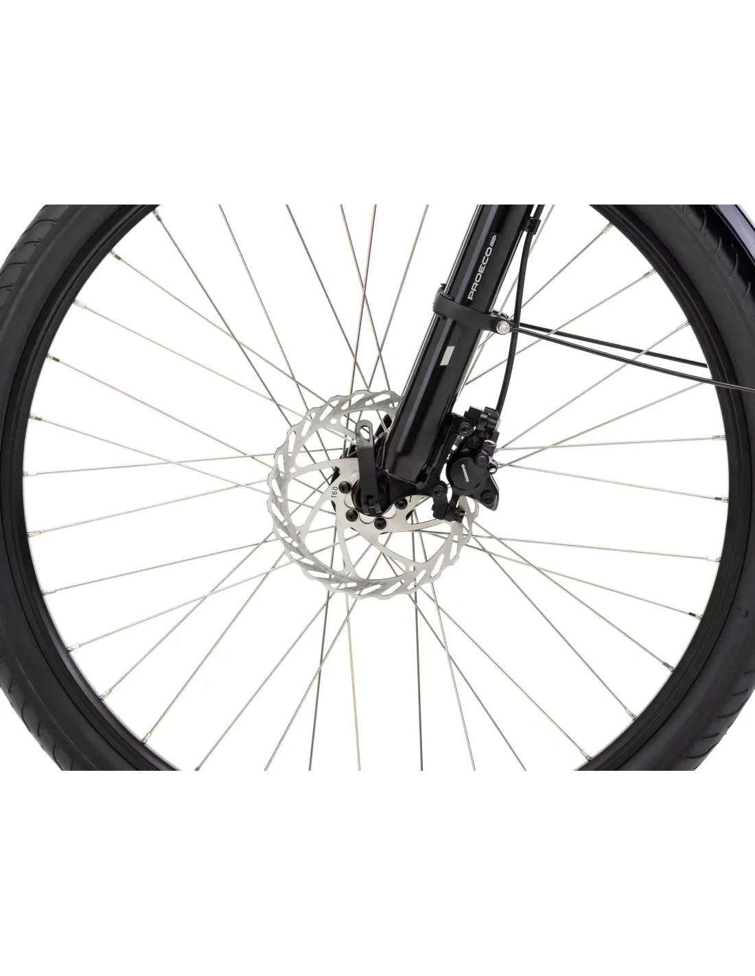 Bezpieczeństwo to podstawa, dlatego model Proeco Wave AN 1.0 został wyposażony w hydrauliczne hamulce tarczowe Shimano MT200 z tarczami 160 mm z przodu i z tyłu, które zapewniają niezawodną i skuteczną siłę hamowania, niezależnie od warunków pogodowych oraz precyzyjne dozowanie sił hamowania. To rozwiązanie, które znacząco podnosi pewność jazdy w ruchu miejskim.