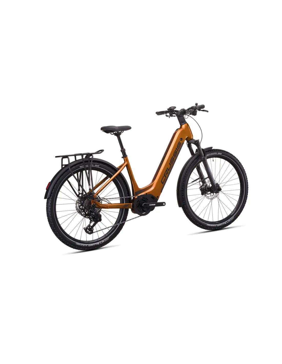 CRUSSIS e-Country 10.11 (715 Wh) to praktyczny, komfortowy rower elektryczny stworzony z myślą o codziennych dojazdach, zakupach i rekreacyjnych wycieczkach. Konstrukcja z niskim przekrokiem ułatwia wsiadanie i zsiadanie, a stabilna geometria zapewnia pewność prowadzenia zarówno w ruchu miejskim, jak i na ścieżkach poza miastem.