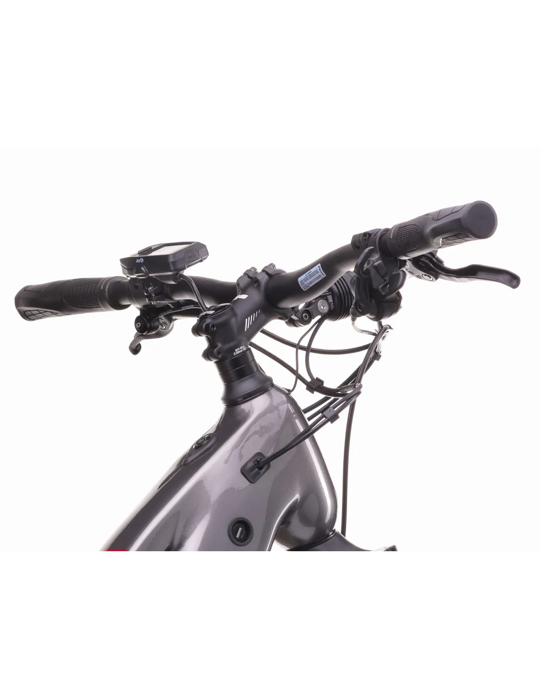 Pełną kontrolę nad parametrami jazdy zapewnia nowoczesny, kolorowy wyświetlacz LCD Panasonic umieszczony po lewej stronie uchwytu kierownicy. Przekątna ekranu wynosi ok. 4,5 cm. To inteligentny komputer pokładowy o wysokim kontraście, który pozostaje czytelny nawet w pełnym słońcu. Ekran w czasie rzeczywistym informuje o prędkości, dystansie, poziomie naładowania baterii oraz o aktualnym trybie wspomagania. Istnieje możliwość wyboru 10 języków. Intuicyjny interfejs pozwala na błyskawiczną zmianę ustawień. Solidna obudowa i wysoka klasa odporności na warunki atmosferyczne gwarantują, że urządzenie sprawdzi się w każdą pogodę. Jednostka sterująca ma stopień ochrony IPX5 przed wodą i pyłem. Ponadto wyświetlacz jest podłączony do Bluetooth, dzięki czemu możliwe jest korzystanie z aplikacji na smartfony takich jak „Koomot” i „Strava”.