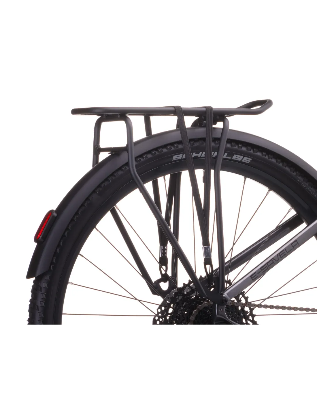 Crussis e-Savela 9.11 to rower, który nie wymaga żadnych dodatkowych inwestycji, by wyruszyć w nieznane. Został w pełni uzbrojony w wysokiej klasy akcesoria, które podnoszą komfort. Solidne błotniki skutecznie chronią przed wodą i błotem, a wytrzymały bagażnik o dużej nośności umożliwia stabilny montaż sakw – idealny na zakupy w mieście lub na piknik poza miastem.