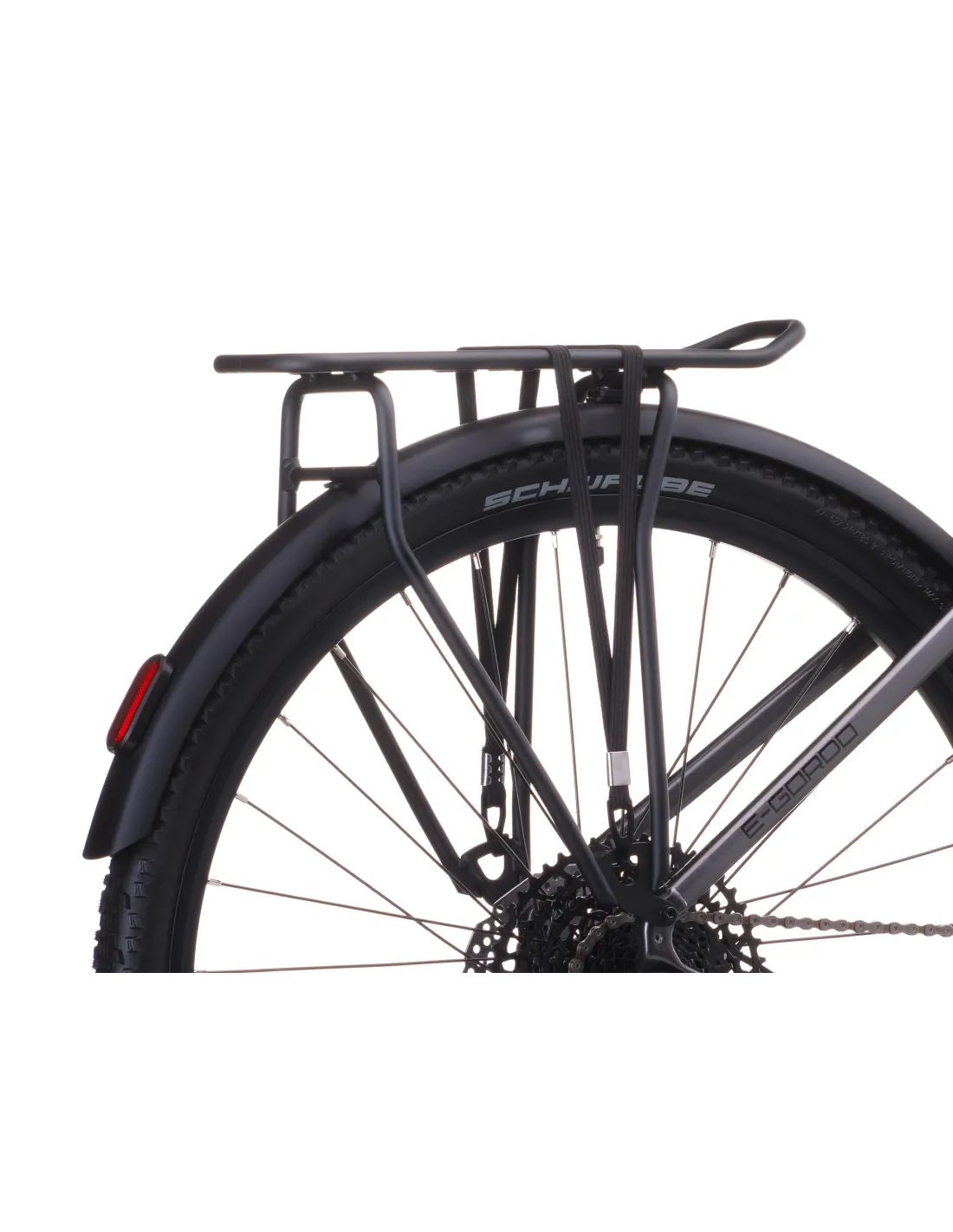 Crussis e-Gordo 9.11 to rower, który nie wymaga żadnych dodatkowych inwestycji, by wyruszyć w nieznane. Został w pełni uzbrojony w wysokiej klasy akcesoria, które podnoszą komfort. Solidne błotniki skutecznie chronią przed wodą i błotem, a wytrzymały bagażnik o dużej nośności umożliwia stabilny montaż sakw – idealny na zakupy w mieście lub na piknik poza miastem.