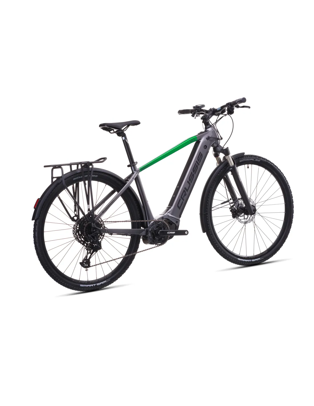 Crussis e-Gordo 9.11 to wszechstronny model marki Crussis. Męski odpowiednik popularnej Saveli, łączący w sobie sportową geometerię sztywnej i trwałej ramy z potężnym silnikiem Panasonic GX Ultimate, z mega wydajną baterią 715 Wh, topowym osprzętem oraz pełnym wyposażeniem. To rower, który równie dobrze czuje się na asfaltowych ścieżkach rowerowych, jak i na leśnych trasach podczas dłuższych wycieczek. Jeśli szukasz roweru, który wytrzyma intensywne tempo i wymagające trasy to e-Gordo będzie idealną propozycją dla Ciebie