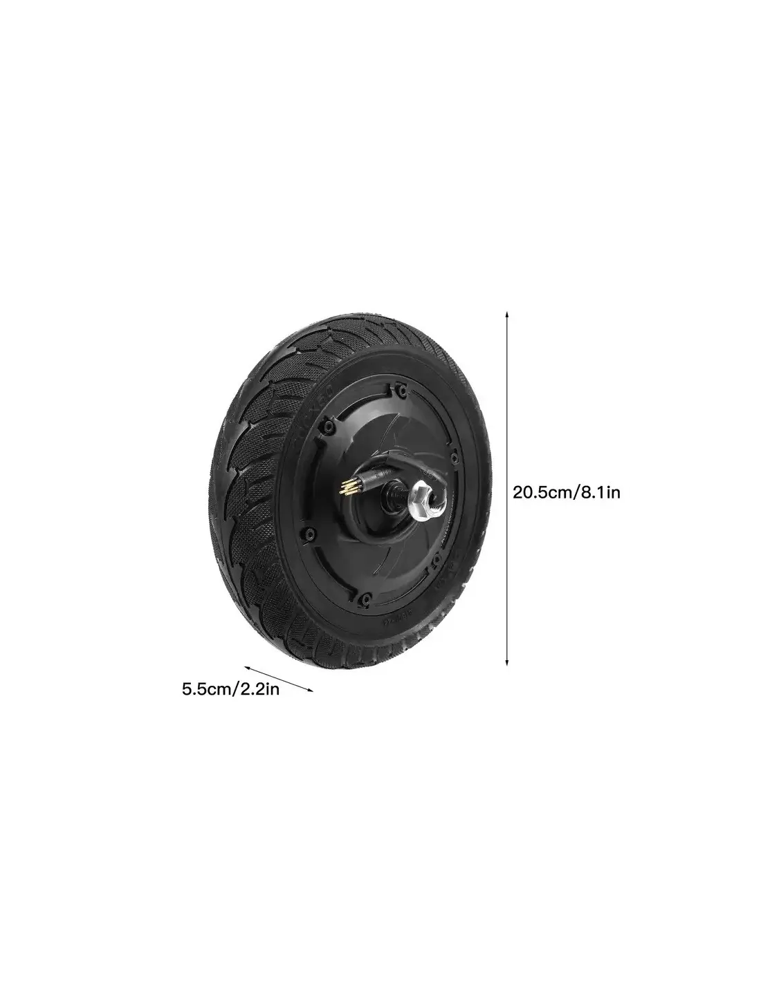 W skład zestawu wchodzi: felga z silnikiem założoną oponą pełną, łożyskami i piastą, okablowanie zewnętrzne ze wtyczkami.