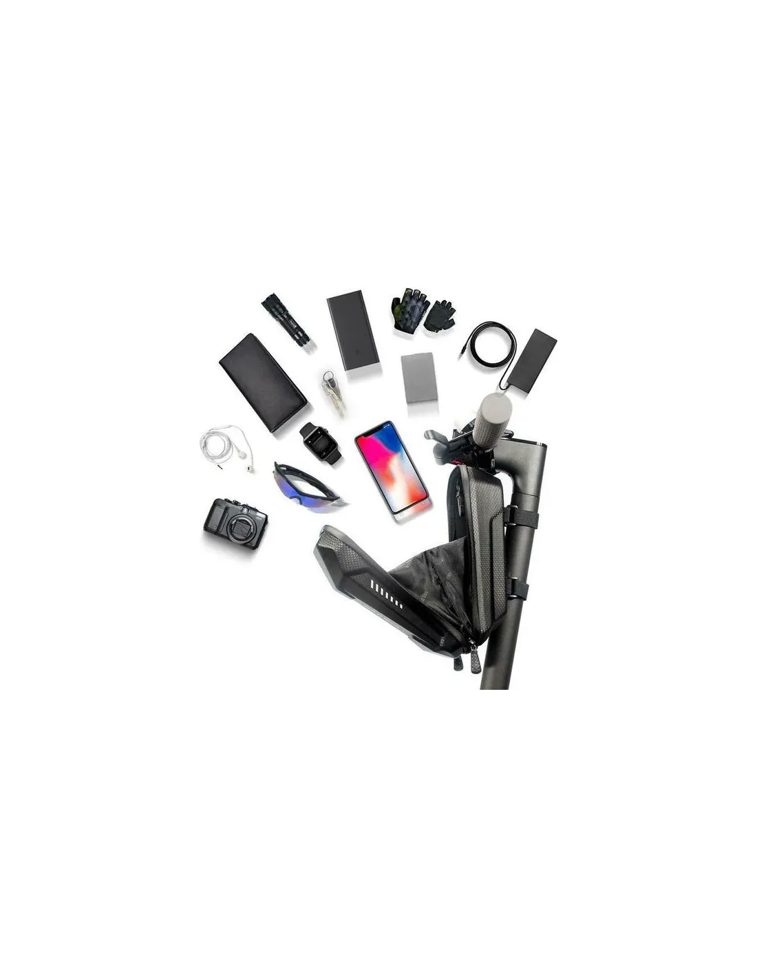 Wodoodporna, bardzo wytrzymała i usztywniana torba. Posiada dużą grubość ochronną oraz wewnętrzne wyłożenie miękką pianką, zapewniającą pełną ochronę zawartości. Osobne przegródki oraz siateczkowa kieszeń zapewnią wygodę i komfort użytkowania. Posiada dodatkowe zapięcie na klucze, odpinane na rzepy pasy oraz uchwyt. Dostępna w kolorze ciemnoszarym w rozmiarze idealnie dopasowanym do dużych hulajnóg takich jak Techlife X7, Dualtron Spider, Kaabo Mantis, Kaabo Wolf Warrior 11, ale również do mniejszych jak Xiaomi M365, Frugal Cyber, Techlife X5 i większości innych hulajnóg dostępnych na rynku. Dzięki naklejkom odblaskowym przyklejonym na torbie WildMan nasza widoczność po zmroku jest zdecydowanie lepsza, co wpływa jednoznacznie na nasze bezpieczeństwo podczas jazdy.