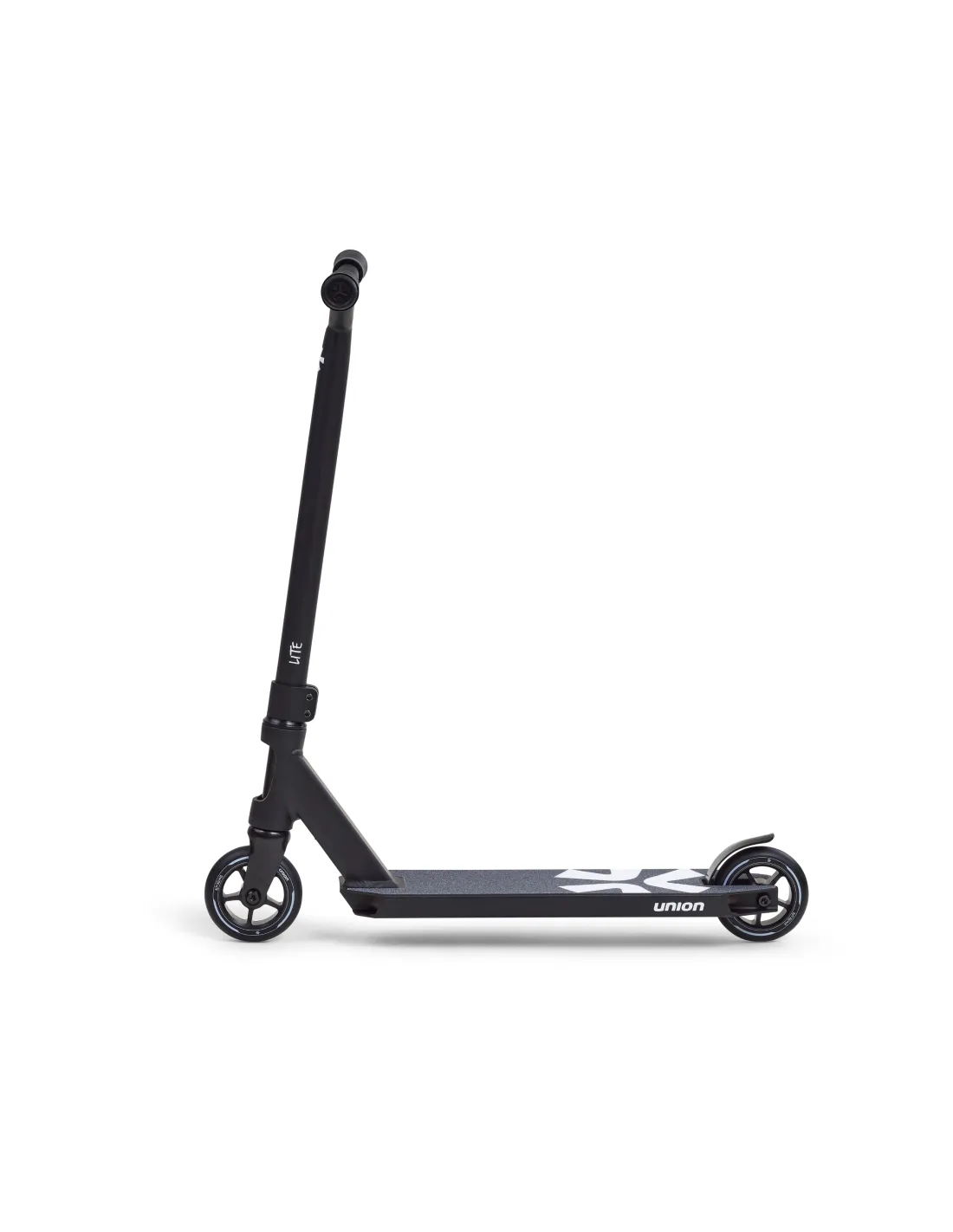 Union Lite to doskonały wybór dla osób rozpoczynających swoją przygodę z jazdą na hulajnodze wyczynowej – solidne wykonanie i niezawodność sprawiają, że hulajnoga świetnie sprawdzi się podczas pierwszych prób w skateparku, a przy tym pozostaje przystępna cenowo. Jej dużym atutem jest niska waga – 3,14 kg dla rozmiaru XS, 3,29 kg dla rozmiaru S oraz 3,41 kg dla rozmiaru M – dzięki czemu model Lite spełnia standardy hulajnóg wyczynowych. Przekłada się to na lepszą kontrolę, większą zwrotność i komfort jazdy, co jest szczególnie ważne na początku nauki. Nowoczesna, minimalistyczna stylistyka łączy atrakcyjny wygląd z praktycznymi rozwiązaniami, dzięki czemu hulajnoga świetnie sprawdzi się także w rękach początkujących riderów.