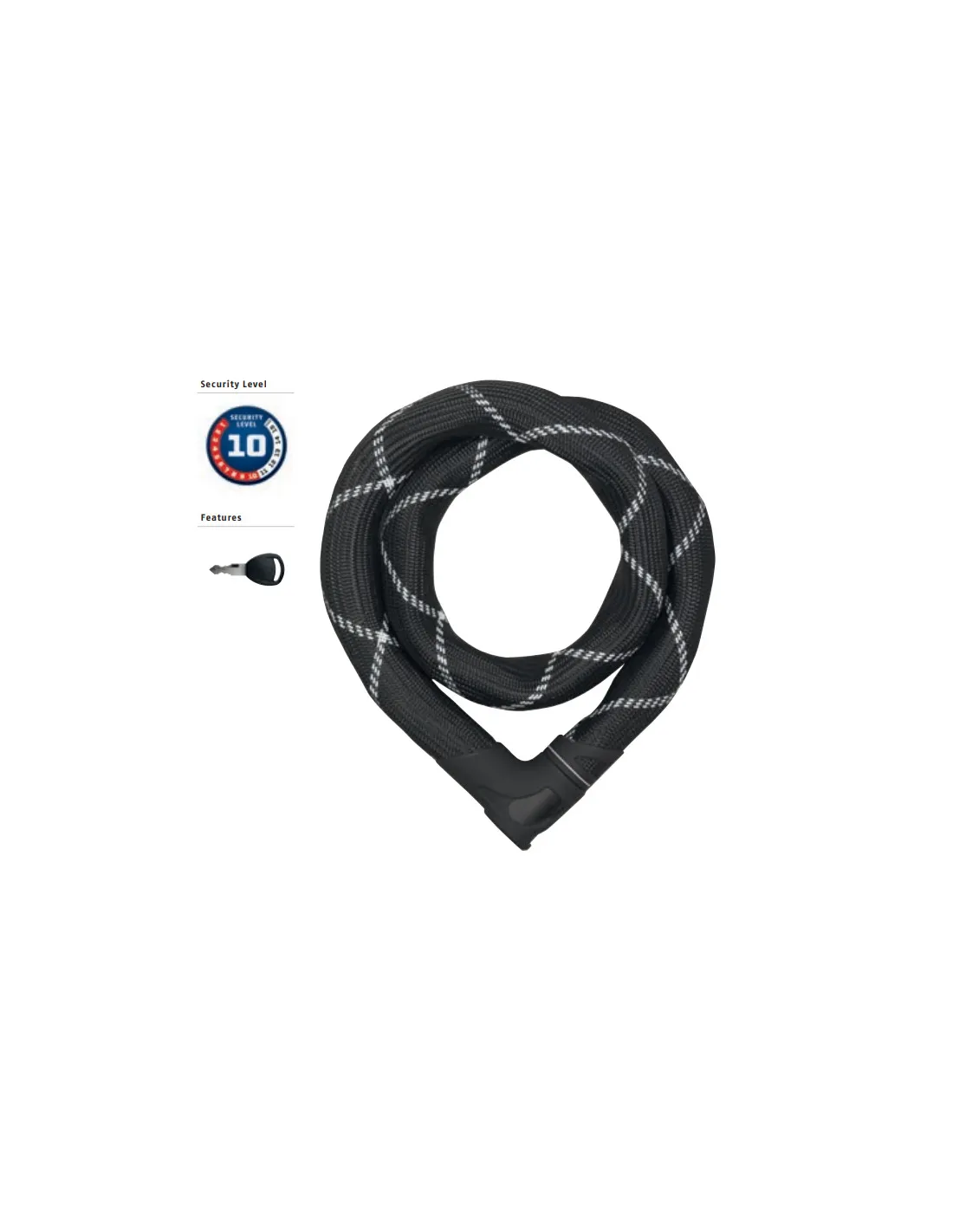 Wysoki poziom zabezpieczenia oraz łatwość użytkowania to cechy zapięcia z serii ABUS 8210/85. Rękaw z włókna syntetycznego chroni zabezpieczony sprzęt przed zadrapaniami i lekkimi uszkodzeniami mechanicznymi. Długi zestaw ogniw pozwoli przypiąć np. rower do stałego elementu architektonicznego. Od teraz możesz bez obaw zostawić swój rower przed kawiarnią i cieszyć się bezpieczeństwem Twojej własności. Pancerny wygląd skutecznie odstrasza potencjalnego złodzieja! Idealny do zabezpieczenia drogich rowerów, hulajnóg elektrycznych, a nawet motocykli lub motorowerów.