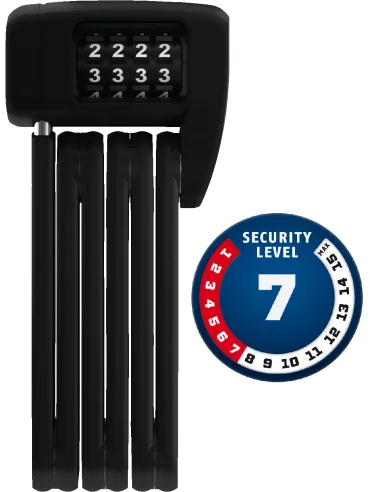 ABUS Bordo Lite Mini 6055C/60 BK to zabezpieczenie o niezwykle kompaktowych rozmiarach, oferujące nad wyraz wysoki poziom bezpieczeństwa. Od teraz Twoja hulajnoga elektryczna, rower, motorower lub inny pojazd będzie zabezpieczony przed ryzykiem kradzieży! 7 stopień w 15 stopniowej skali przy tak małych wymiarach sprawia, że możemy transportować to zabezpieczenie nawet w małej sakwie rowerowej, a w kryzysowej sytuacji przypiąć rower do elementu architektury bez obawy o jego bezpieczeństwo! Możliwość składania zabezpieczenia pozwala na schowanie go do małej torebki lub plecaka, gdy chcemy Bordo Lite Mini C transportować. Idealne zabezpieczenie do użytkowania w mieście, do przypięcia roweru, hulajnogi elektrycznej, klasycznej, a nawet motoroweru. Zabezpieczenie kodem jest bardzo wygodne!