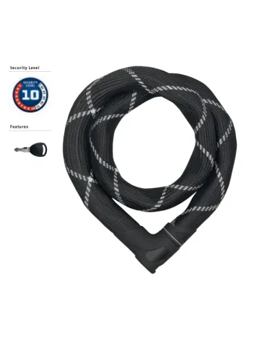 Wysoki poziom zabezpieczenia oraz łatwość użytkowania to cechy zapięcia z serii ABUS 8210/110. Rękaw z włókna syntetycznego chroni zabezpieczony sprzęt przed zadrapaniami i lekkimi uszkodzeniami mechanicznymi. Długi zestaw ogniw pozwoli przypiąć np. rower do stałego elementu architektonicznego. Od teraz możesz bez obaw zostawić swój rower przed kawiarnią i cieszyć się bezpieczeństwem Twojej własności. Pancerny wygląd skutecznie odstrasza potencjalnego złodzieja! Idealny do zabezpieczenia drogich rowerów, hulajnóg elektrycznych, a nawet motocykli lub motorowerów.