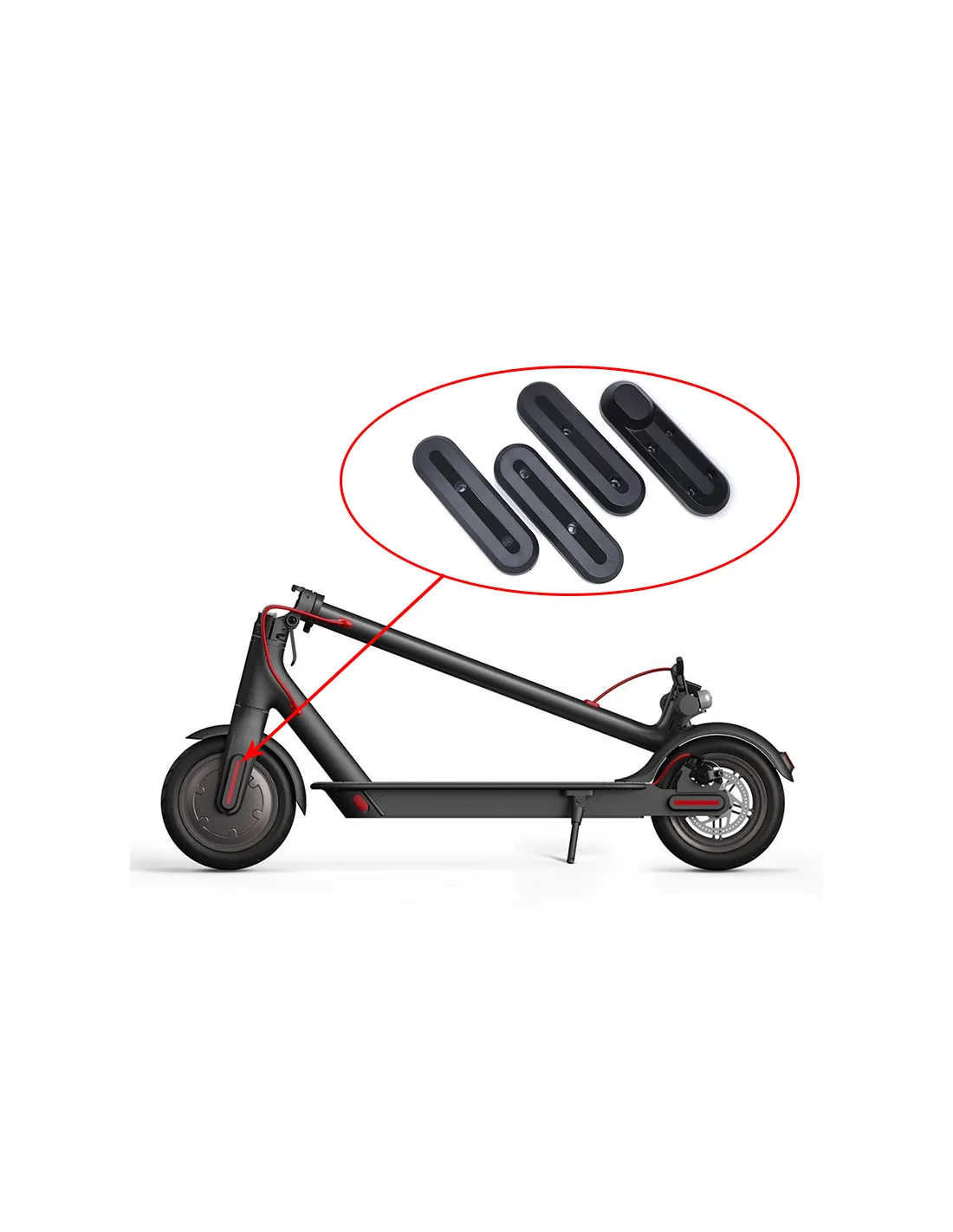 Komplet osłon, maskownic na śruby do Xiaomi m365 oraz m365 pro. Komplet zawiera 4 osłony oraz naklejki odblaskowe.